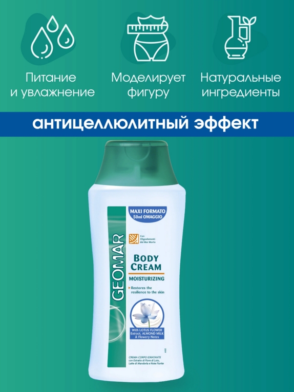 Geomar крем для тела направленного действия, подтягивающий и укрепляющий кожу. Миндальные протеины и мягкий кремний эффективно борются с вялостью кожи, восстанавливают поддерживающие ткани и заметно повышают эластичность и упругость кожи. Миндальное масло и миндальное молочко великолепно питают и смягчают кожу. Обладает роскошной свежей текстурой и восхитительным ароматом цветущего миндаля. Новая формула содержит экстракт ореха, который укрепляет кожу, делает ее более эластичной, обновляет клетки. Крем с экстрактом Лотоса, обеспечивает достаточную степень гидратации кожи.